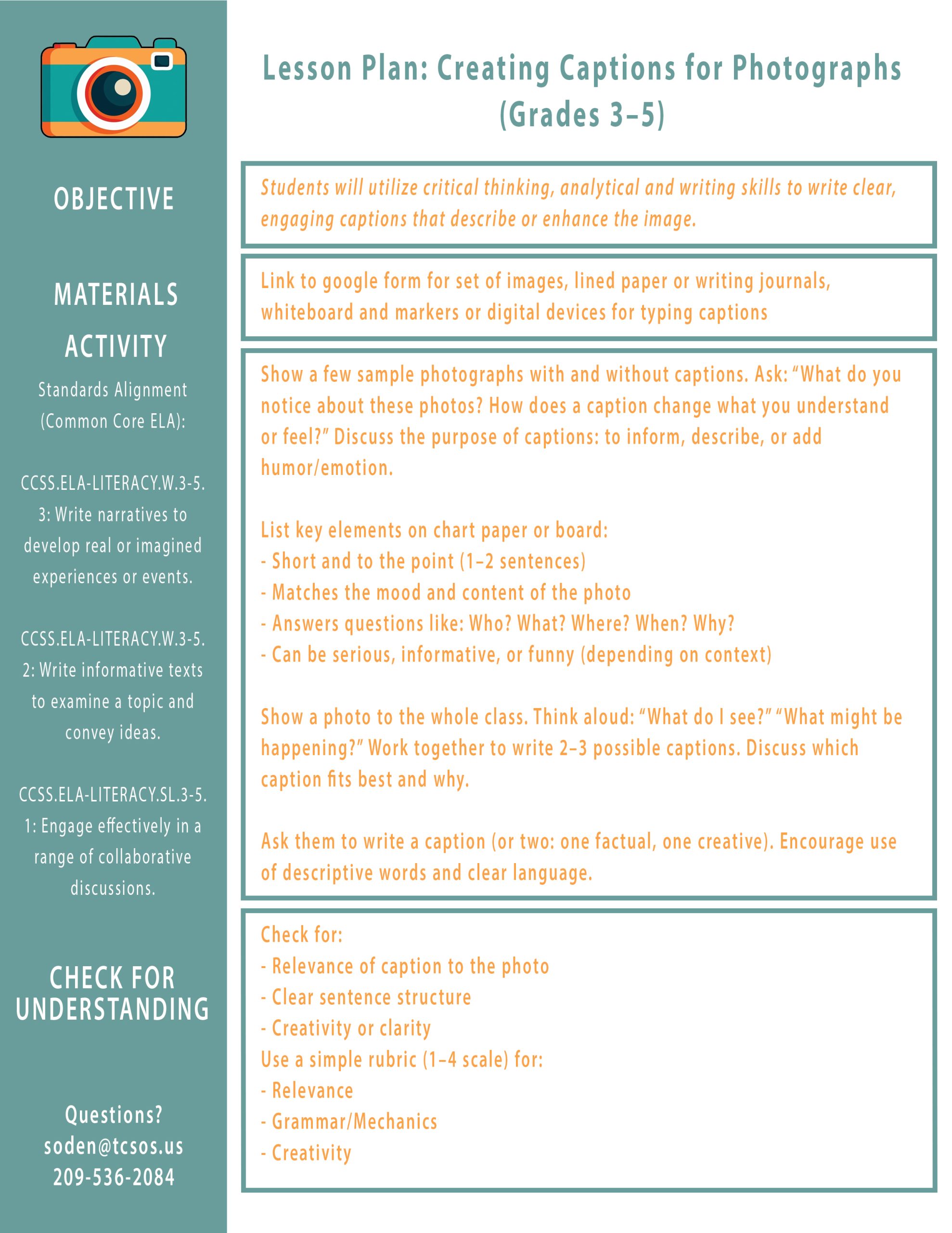 Grades 3–5 Caption Writing Lesson