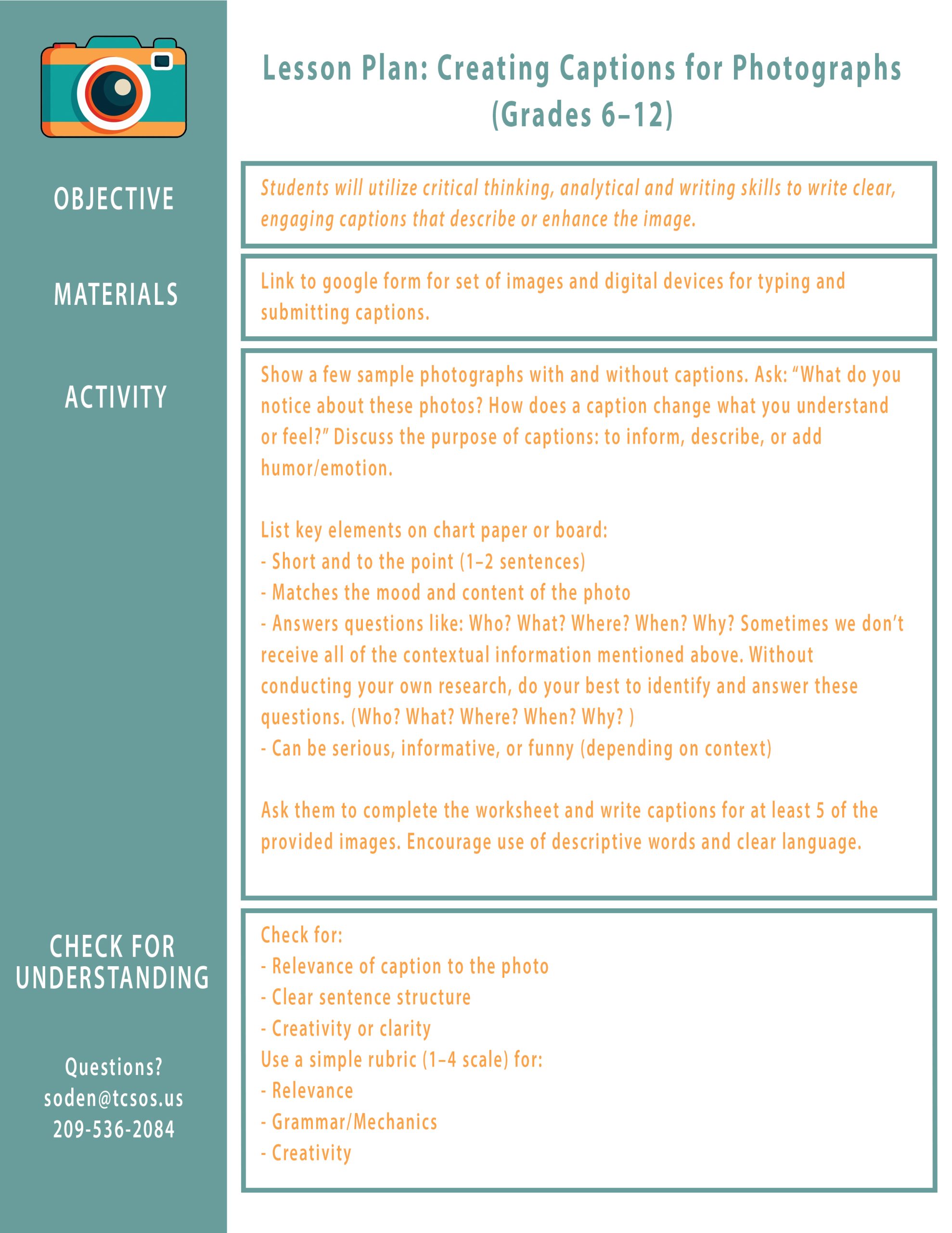 Grades 6–12 Caption Writing Lesson